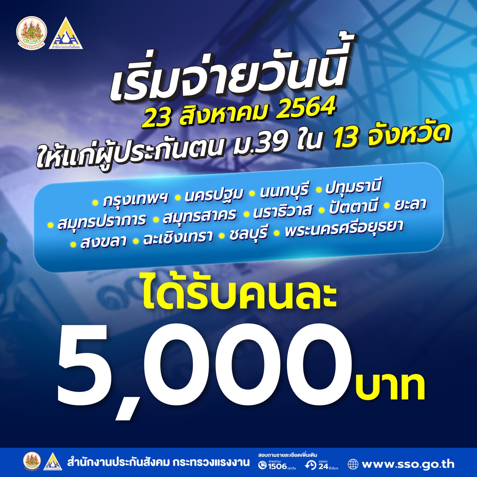 เชคสทธ ประกนสงคม wwwssogoth ม33 ม39 ม40 เชควนรบเงนเยยวยา. มาตรา 39 และ มาตรา 40 รบเงนเยยวยา คนละ 5000 บาท. ตรวจสอบสทธ wwwssogoth เงนเยยวยา.