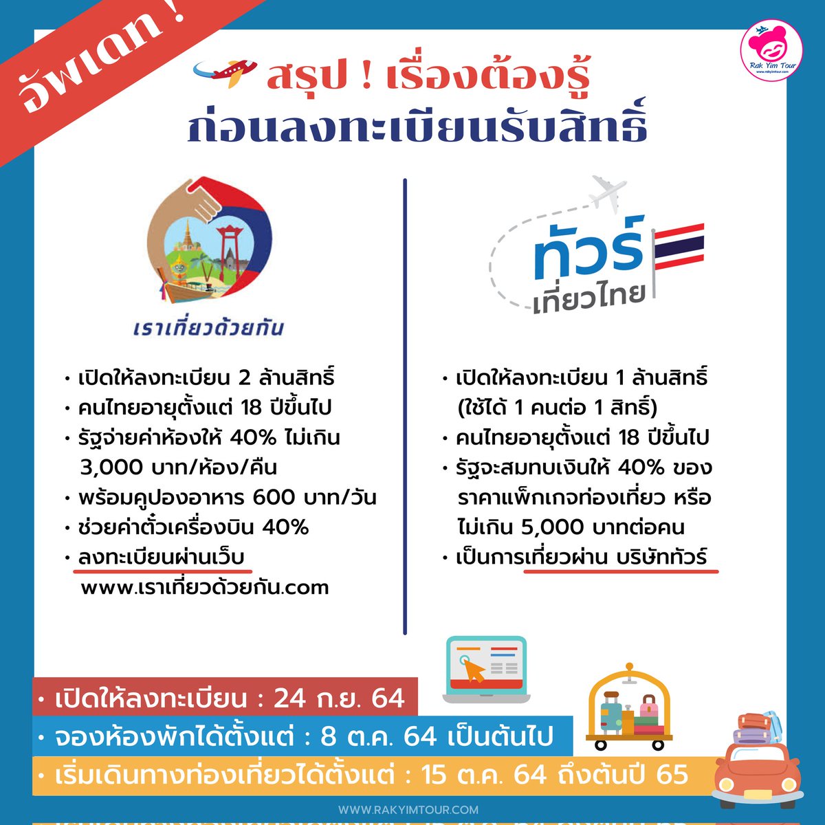 วนท 24 กย2564 ผทสนใจใชสทธในโครงการเราเทยวดวยกน เฟส 3 และ โครงการทวรเทยวไทย สามารถเขาลงทะเบยนยนยน ตวตนในเวบไซต wwwเรา. สรปมาตรการแพกเกจ เราเทยวดวยกน เปดใหลงทะเบยนชง 3 สทธ ในลกษณะของการรวมจาย ฉบบเขาใจงาย พรอมยกตวอยางวธการคำนวณคาใช. 63 คาดคนแหจองเตม 5 ลานสทธภายในวนเดยว.